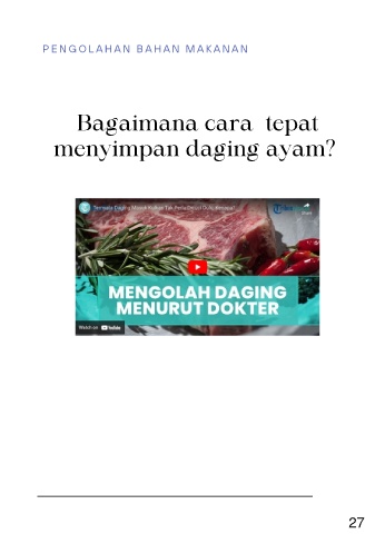 P E N G O L A H A N B A H A N M A K A N A N Bagaimana cara tepat menyimpan daging ayam? 27