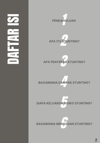 1 DAFTAR ISI PENDAHULUAN 2 APA ITU STUNTING? 3 APA PENYEBAB STUNTING? 4 BAGAIMANA DAMPAK STUNTING? 5 SIAPA KELUARGA RISIKO STUNTING? 6 BAGAIMANA MENCEGAH STUNTING? 2